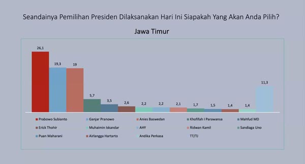 Survei Lanskap Pilpres di Jatim, Prabowo Ungguli Ganjar