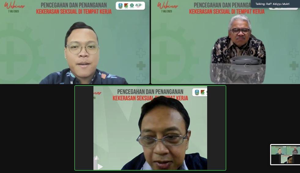Dr. Himawan Estu Bagijo, SH, MH dalam kesempatan membuka webinar menekankan bahwa dalam pelaksanaan keselamatan dan kesehatan kerja di tempat kerja, tindakan preventif jauh lebih baik. Hal ini sejalan dengan terbitnya keputusan menteri ketenagakerjaan No. 88 tahun 2023 tentang Pedoman Pencegahan dan Penanganan Kekerasan Seksual di Tempat Kerja. Kepmenaker ini sebagai bentuk tindakan preventif yang dilakukan untuk mencegah isu kekerasan seksual di tempat kerja.