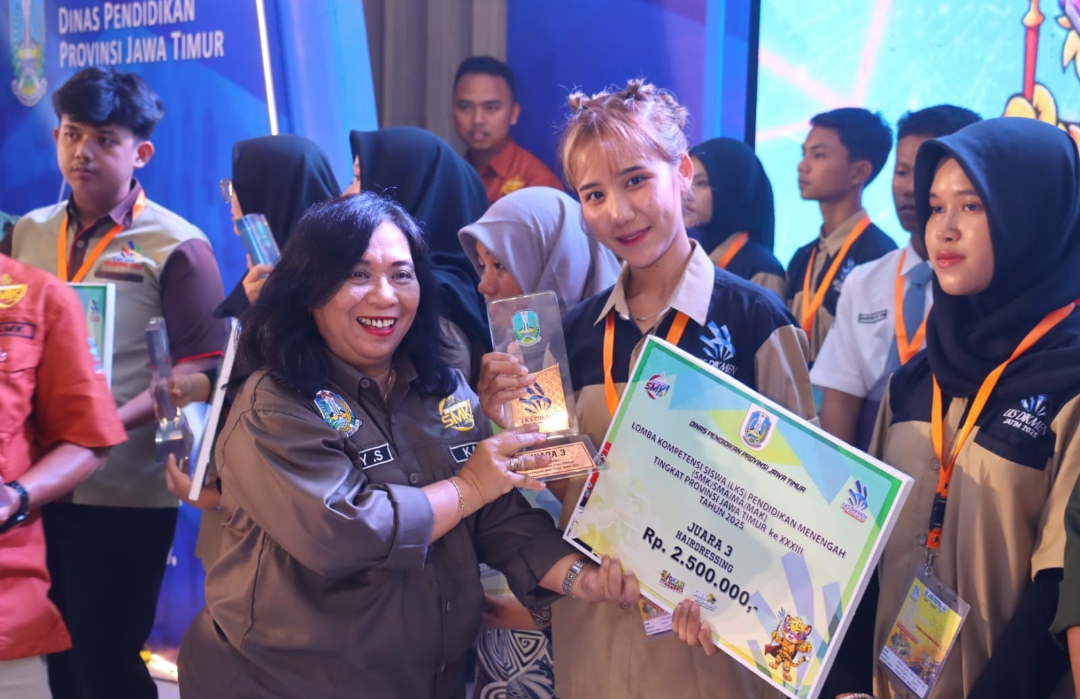 SURABAYA, iNEWSSURABAYA.ID – Lomba Kompetensi Siswa Pendidikan Menengah (LKS Dikmen) 2025 tingkat Provinsi Jawa Timur resmi berakhir pada Jumat (25/4/2025). Sebanyak 65 peserta berhasil meraih juara pertama dari 54 bidang lomba kompetensi keahlian dan 2 bidang lomba eksibisi.