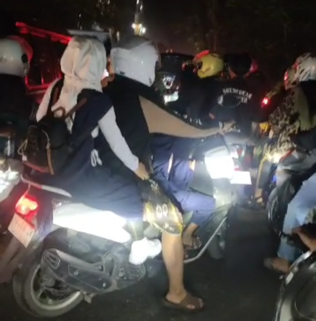 Antrean panjang sepeda motor tampak mengular, bahkan lajur khusus roda dua hanya mampu menampung dua sepeda motor berjalan berdampingan. Kondisi ini menyebabkan kemacetan cukup parah di beberapa titik menjelang pintu masuk Jembatan Suramadu.