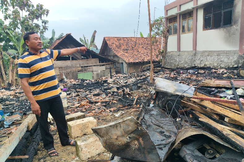 “Saya lagi di sawah, tahu-tahu dikabarin rumah terbakar. Waktu sampai, semuanya sudah rata dengan tanah,” ujarnya dengan nada sedih.