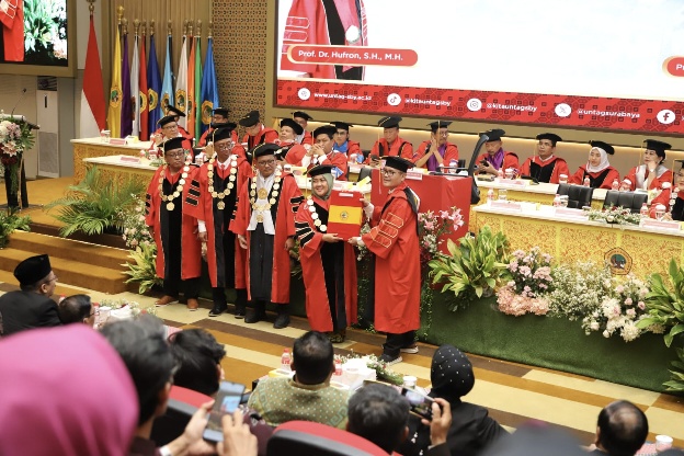 Guru Besar Fakultas Hukum, Prof. Dr. Hufron, S.H., M.H., dalam orasi ilmiahnya berjudul Urgensi Pembentukan Undang-Undang Lembaga Kepresidenan, menyoroti problem konstitusional yang selama ini kurang mendapat perhatian. Menurutnya, kewenangan presiden di Indonesia sangat luas, sementara posisi wakil presiden belum memiliki aturan yang jelas.