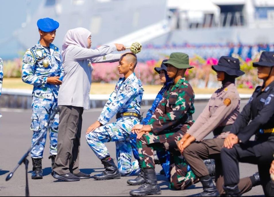 “Baret ini bukan sekadar atribut seragam. Ini simbol tanggung jawab, kehormatan, dan komitmen moral untuk menjaga solidaritas dan integritas,” tegas Khofifah di hadapan ribuan siswa dan orang tua yang memenuhi area dermaga.