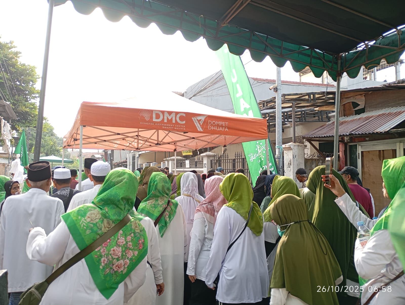 Suasana pagi itu terasa hangat dan penuh semangat. Para santri mengenakan atribut khas berwarna hijau dan putih, berjalan bersama sambil melantunkan shalawat di sepanjang rute jalan sehat. Di beberapa titik, relawan Dompet Dhuafa memberikan edukasi ringan tentang pentingnya menjaga kesehatan dan kebersihan lingkungan pesantren.