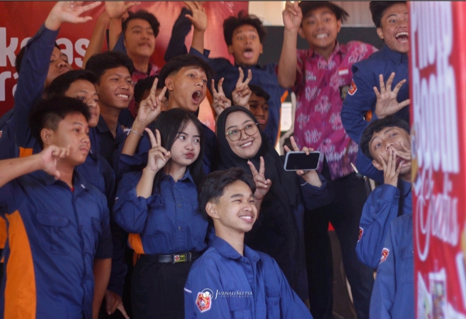 Tak hanya menampilkan hasil karya, panitia juga menyediakan photobooth yang langsung menjadi spot favorit. Suasana ceria terlihat ketika guru dan siswa bergantian berfoto bersama, memperlihatkan sisi santai di balik suasana belajar yang biasanya serius.