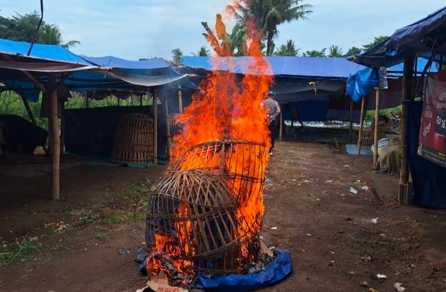 Meski tak berhasil mengamankan pelaku, polisi tidak tinggal diam. Sebagai langkah pencegahan, petugas memusnahkan fasilitas yang ditemukan di lokasi. Kurungan ayam, terpal, dan karpet yang diduga digunakan untuk kegiatan perjudian dibakar langsung di tempat.